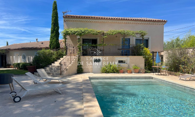 Propriété atypique des années 60 située dans un environnement enchanteur , le long du canal des Alpines à flanc de collines avec une vue très dégagée sur le parc et la Montagnette au loin. On accède à la maison en surplomb soit par un ascenseur situé dans le garage aménagé pouvant accueillir 3 voitures soit par les escaliers extérieurs. La propriété comprend 7 chambres et salles de bain réparties entre la maison principale , la maison de gardien et les anciens garages aménagés en atelier . La maison est entourée d'un parc de 3.2 Ha avec champs d'oliviers , pinède et prairie. Arrosage automatique par le canal et un puit.