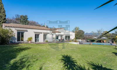 Architecture de 1988 signée de l'architecte André Stern, cette villa moderniste de 346 m² posée comme une sculpture habitée sur un parc de 6 000 m2 déploie ses ailes géométriques dans le noyau vert des Trois-Lucs. Pensée sur un plan en étoile, la construction a été dessinée pour capter au mieux le soleil. Béton nervuré, pavés de verre, hublots, débords de toiture, lignes courbes et lignes droites rythment son architecture. Dès l'entrée, la symétrie des lignes et les perspectives marquent le lieu. En son centre, un salon circulaire enveloppant s'articule autour d'une cheminée à foyer ouvert sous une superbe verrière, puits de lumière. Les murs sont entièrement vitrés de menuiseries en alu tout hauteur, concentrant la lumière et permettant de supprimer la frontière dedans / dehors. Le volume est prolongé à l'extérieur par une terrasse en bois suivie d'une piscine arrondie à débordement. La salle à manger occupe une pièce à part entière, plus intime, et mène à la cuisine également ouverte sur le jardin. Dans l'aile gauche, un espace bureau ainsi qu'une chambre parentale avec dressing et salle de bain privative sont suspendus au-dessus du jardin. La suite de la partie nuit se situe au niveau inférieur comprenant quatre chambres toutes tournées vers la fraîcheur du jardin, qui se partagent une salle de bain. Un espace de détente avec sauna et de vastes volumes de rangements viennent compléter ce niveau. Dehors, le jardin qui entoure l'habitation abrite un court de tennis, un terrain de pétanque ainsi qu'un espace de stationnement nichés discrètement dans la végétation omniprésente. Une œuvre unique, à habiter.