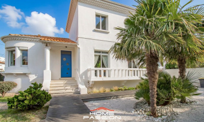 À Royan, maison à vendre (233 m²), avec balcon et jardin. Belle vue sur la mer. Elle est constituée de la façon suivante : une salle d'eau, 4 chambres (dont 2 suites parentales), 2 cuisines, 2 WC séparés, 2 séjours ainsi qu'un bureau. Les pièces se répartissent sur 3 niveaux. Un portail électrique, des volets roulants, une cheminée et du double vitrage y sont déjà présents. En choisissant cette propriété, vous aurez également à votre disposition un garage.