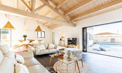 iad France - Jacky Gaillard vous propose: REF: 1921979. Belle maison de 213 m2 habitables et de 6 pièces plus garage de 21 m2 avec son parking et ses dépendances de 47 m2 sur un terrain entièrement clôturé de 4577 m2 avec portail, bassin et puits artésien. Entrée, grand séjour/salon de 60 m2 surplombé d'une vaste mezzanine, cuisine séparée mais semi-ouverte sur le séjour, chambre parentale avec salle d'eau et WC indépendants, deux autres chambres avec salle d'eau, salle de détente ou bureau avec sauna, WC indépendants, lingerie et cellier. Chauffage par climatisation réversible dans toutes les pièces, ballon d'eau chaude thermodynamique, huisseries PVC double vitrage, sécurisée par vidéo surveillance. Dépendances comprenant atelier, bûcher et local tondeuse. Possibilité transformer la salle de détente et la mezzanine en chambres sans gros travaux. Maison parfaitement entretenue. Toutes commodités à 5 mn et plages à 10 mn.. Honoraires d'agence à la charge du vendeur. Information d'affichage énergétique sur ce bien : classe ENERGIE C indice 140 et classe CLIMAT A indice 4. Les informations sur les risques auxquels ce bien est exposé, y compris l'obligation légale de débroussaillement, sont disponibles sur le site Géorisques : La présente annonce immobilière a été rédigée sous la responsabilité éditoriale de M Jacky Gaillard mandataire indépendant en immobilier (sans détention de fonds), agent commercial de la SAS I@D France immatriculé au RSAC de LA ROCHELLE sous le numéro 799238621, titulaire de la carte de démarchage immobilier pour le compte de la société I@D France SAS.