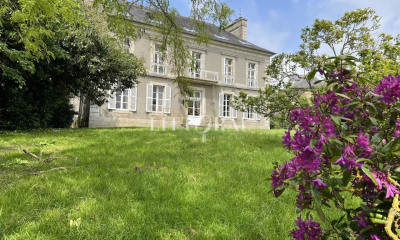Pierres & Mer vous propose ce manoir du milieu du XIXe siècle, construit durant le Second Empire, situé en plein coeur de Lannion, à seulement quelques minutes à pied du centre-ville et de la gare TGV, tout en étant à proximité directe des axes menant aux plus belles plages de la Côte de Granit Rose. Derrière sa façade en pierre, ce manoir développe 427 m² habitables sur un terrain clos, arboré et constructible de 3 500 m². Le jardin paysager, riche en essences variées, offre plusieurs ambiances propices à la détente et à la contemplation. Un petit pont en pierre, véritable signature romantique du parc, renforce le charme de ce bien rare. Une grande dépendance en pierre d'environ 100 m², anciennement utilisée comme garage à calèche en rez-de-chaussée avec les habitations des palfreniers à l'étage, est à réhabiliter intégralement. Cette magnifique batisse complète l'ensemble et offre de nombreuses possibilités d'aménagement (gîte, atelier, garage). En face de cette dépendance à fort potentiel se trouve un puit en pierres. Dès l'entrée, on est accueilli par un sol en marbre et une hauteur sous plafond d'environ 3,50 m. Un petit salon d?accueil mène à une vaste salle à manger avec parquet de Versailles, puis à un grand salon lumineux avec espace bibliothèque et coin piano. Le rez-de-chaussée accueille également une chambre parentale avec salle d'eau privative, ainsi qu'une grande cuisine dînatoire de 20 m², entièrement aménagée et équipée. Un magnifique escalier, datant du Second Empire, mène au premier étage, où l'on découvre 5 chambres, un bureau, une salle de bain, ainsi qu'un cabinet de toilettes dans chaque pièce. L'une des chambres dispose d'un petit salon privé, et trois d'entre elles bénéficient d'un balcon avec vue sur le jardin. Le dernier étage, autrefois loué à des étudiants, comprend 8 chambres, chacune avec leur propre cabinet de toilettes. Bien qu'il nécessite une rénovation partielle, ce niveau présente un fort potentiel d'aménagement, que ce soit pour créer des suites supplémentaires, des espaces de réception ou un projet locatif. Ce manoir dispose de matériaux d'origine noble et haut de gamme : marbre, boiseries, moulures, parquets d'époque, le tout formant un ensemble d'une grande élégance révélant le cachet et le potentiel exceptionnel de cette propriété. Un bien d'exception au c?ur de la ville qui séduira autant une famille en quête d'un cadre de vie privilégié qu'un investisseur ou un porteur de projet d'envergure. Pour toutes questions sur ce bien, vous pouvez contacter Yves Daniel par téléphone au 0669664995