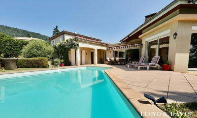 Maison d'architecte des années 60 situé dans le quartier recherché de Châteauvert, entièrement rénovée, mêlant modernité et authenticité. Les volumes généreux et la très belle luminosité offrent un cadre de vie particulièrement agréable. La maison se compose de 6 chambres, d'une vaste pièce de vie, d'une cuisine, d'une véranda, de 3 salles de bains, 4 WC, ainsi que de nombreux espaces de rangement, un dressing et une buanderie. Un studio indépendant avec salle d'eau et WC complète l'ensemble. À l'extérieur, le terrain clos, joliment arboré et paysagé, accueille une cuisine d'été entièrement équipée (lave-vaisselle, plancha gaz, évier, rangements, bar), une piscine chauffée 8x4 m avec liner gris clair, sécurisée par un store mécanique, ainsi qu'un pool house et un salon d'été ombragé. DPE : D Un double garage vient parfaire les prestations. La rénovation, raffinée et de grande qualité, confère à cette propriété un charme indéniable et de nombreuses possibilités d'aménagement : résidence principale, maison de famille, accueil ou location saisonnière, avec une organisation de vie modulable selon les saisons. Pour plus de renseignements et pour organiser une visite, contactez Céline GILLES ou Virginie BURGKAM au 0683417047 ou par email à v.burgkam@visiance.pro. Virginie BURGKAM (EI) Agent Commercial - Numéro RSAC : 842754442 - Romans.