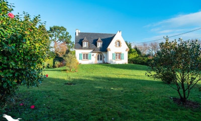 Au calme d'un environnement verdoyant et préservé, à 2km de la plage et du bourg de Fouesnant, cette charmante maison , vous offre 4 chambres dont une au rdc, 2 salles d'eau, 2 wc, un bel espace de vie chaleureux, cuisine indépendante, buanderie. Édifiée sur un terrain paysager de 2 170 m², cette demeure de caractère en pierre, avec son toit de chaume traditionnel et ses volets bleus typiques, offre une atmosphère chaleureuse et pleine de cachet. À l'extérieur, le grand jardin paysager vous invite à la détente en toute intimité. Cette maison rare sur le marché allie charme de l'ancien et qualité de vie bretonne, parfaite comme résidence principale ou secondaire. (4.91 % d'honoraires TTC à la charge de l'acquéreur.)