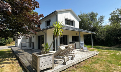 Le Berre Immobilier - L'Adresse FOUESNANT. BEG-MEIL : Venez découvrir cette jolie maison familiale de 152 m² environ, édifiée dans les années 80, sur un terrain de 569 m² environ, et totalement rénovée en 2024. Idéalement située dans un secteur résidentiel calme et agréable, elle offre au rez-de-chaussée: une belle entrée, une pièce de vie spacieuse et lumineuse avec cuisine aménagée, équipée et ouverte, donnant sur une terrasse d'environ 50 m², une buanderie, une grande suite parentale et des toilettes. A l'étage, vous profiterez de quatre chambres confortables, une salle d'eau, un bureau et des toilettes. Un abri de jardin vous permettra de ranger vos vélos et autres "jouets de plage". L'environnement est très agréable, calme et nature. L'emplacement permet un accès rapide, à pied, à la plage et au bourg de Beg-Meil à tout juste 1.5 km. Un joli bien en bord de mer ! (4.92 % d'honoraires TTC à la charge de l'acquéreur.)
