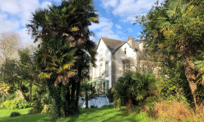 C'est sur les bords de l'Elorn que se dévoile cette propriété singulière, dont le charme opère dès les premiers instants. Édifié à la fin du XIXe siècle, ce manoir au cachet authentique prend place au cœur d'un vaste parc paysager de plus de 2,6 hectares, à l'abri des regards. La demeure principale, aux proportions généreuses, s'élève sur trois niveaux desservis par un ascenseur (à remettre en service ou supprimer). Elle propose sept chambres, une salle de bains et plusieurs salles d'eau, offrant un cadre propice à une vie de famille ou à l'accueil d'hôtes en quête de sérénité. Le rez-de-chaussée se veut chaleureux et fonctionnel, avec une belle entrée centrale menant à une cuisine, un salon agrémenté d'une cheminée à double faces, et une salle à manger lumineuse prolongée par une véranda. Celle-ci s'ouvre sur une terrasse exposée plein Sud, idéale pour profiter des longues journées d'été. Le rez-de-jardin est dédié au bien-être : une piscine intérieure à débordement et un jacuzzi invitent à la détente, tout en offrant un panorama apaisant sur la nature environnante. Plusieurs pièces annexes complètent l'espace, offrant de nombreuses possibilités d'aménagement selon les envies. La propriété bénéficie d'un accès direct et privatif à la grève et à la rivière, pour une immersion totale dans un environnement naturel préservé. Trois dépendances viennent compléter l'ensemble : une maison de gardien, un atelier et d'anciennes écuries, toutes à réinventer. Des travaux sont à envisager pour révéler tout le potentiel de ce lieu chargé d'histoire. Un écrin rare, destiné aux amoureux de caractère et de nature, en quête d'un projet à la hauteur de leurs aspirations. Annonce proposée par Olivier Lintanf, agent commercial - RSAC Brest: 415165356 - Ne recevant pas de fonds.
