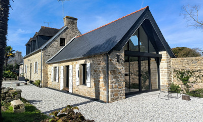 Au cœur de Pont-l'Abbé, à proximité immédiate de ses sites les plus remarquables et ses commerces, cette élégante maison des années quarante, agrandie au fil du temps, bénéficie de vues merveilleuses sur la rivière de Pont-l'Abbé, le pont habité, le bois saint Laurent. Particulièrement lumineuse, la propriété a été rénovée avec soin selon les plans d'un architecte qui a totalement restructuré le lieu, offrant de belles perspectives, des lignes épurées, de beaux espaces de convivialité et la possibilité pour chacun de beaucoup d'indépendance. La maison principale comporte au rez de chaussée une vaste pièce de vie (cuisine, salle à manger, salon) communiquant avec une arrière cuisine d'une part, et un second salon, d'autre part, une buanderie, un WC et une chambre donnant sur le joli jardin clos, équipée de sa propre salle d'eau. À l'étage se trouvent deux chambres et une vaste salle d'eau aux vues exceptionnelles, dressing et WC. Une dépendance prolonge le rez de jardin, offrant six chambres de plain-pied donnant sur le jardin et la terrasse en bois, ainsi que quatre salles d'eau avec WC. La maison dispose également d'un grand garage. A visiter sans tarder!