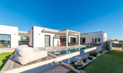 iad France - Anne-Claude Martel vous propose: Superbe Contemporaine - 4 Chambres - Piscine à Débordement - Quartier Prisé de Nîmes Saisissez l'opportunité d'acquérir une maison d'architecte d'exception dans le quartier recherché de Nîmes. Cette magnifique propriété, construite en 2021, allie harmonieusement design contemporain, matériaux de qualité et confort absolu. Caractéristiques de la Maison: - Surface habitable: 187 m² - Superficie du terrain: 2600 m² Cette résidence d'exception s'étend sur 2 étages et offre un espace de vie spacieux et lumineux. Les 4 chambres vous offrent un espace intime et confortable pour toute la famille. Une salle de bain moderne avec baignoire et douche, 2 toilettes indépendants, un cellier et une buanderie répondent à tous les besoins de votre quotidien. La cuisine équipée est un véritable atout pour les amateurs de gastronomie. Les différentes pièces de la maison, sont pensées pour allier fonctionnalité et esthétique. Une terrasse extérieure e la piscine à débordement idéale pour profiter des beaux jours, complète cet ensemble d'exception. Équipements et Confort: Fibre optique, Alarme, vidéo surveillance, porte à reconnaissance d'empreinte, Climatisation réversible gainable. Localisation et Environnement: Cette maison d'architecte bénéficie d'une exposition idéale au sud, offrant une luminosité naturelle et un ensoleillement optimal. Nichée dans un quartier prestigieux de Nîmes, elle vous permet de profiter d'un cadre de vie privilégié, à proximité des commodités, des écoles et des transports en commun. Opportunité Rare à Saisir: Cette maison contemporaine d'architecte offre un cadre de vie exceptionnel, idéal pour les familles exigeantes en quête de qualité, de modernité et de confort. Une visite s'impose pour apprécier tous les aspects uniques de cette propriété d'exception. N'hésitez pas à nous contacter pour plus d'informations ou pour organiser une visite. Honoraires d'agence à la charge du vendeur. Information d'affichage énergétique sur ce bien : classe ENERGIE A indice 41 et classe CLIMAT A indice 1. Les informations sur les risques auxquels ce bien est exposé, y compris l'obligation légale de débroussaillement, sont disponibles sur le site Géorisques : La présente annonce immobilière a été rédigée sous la responsabilité éditoriale de Mme Anne-Claude Martel mandataire indépendant en immobilier (sans détention de fonds), agent commercial de la SAS I@D France immatriculé au RSAC de NIMES CEDEX sous le numéro 853460855, titulaire de la carte de démarchage immobilier pour le compte de la société I@D France SAS.