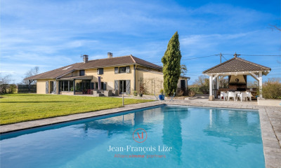 Corps de ferme bressan rénové ! 20 min Mâcon À 15 min de l'A40 (Vonnas) et 20 min de Mâcon, superbe corps de ferme bressan entièrement rénové, sur 7 000 m² de terrain clos paysagé avec piscine et bassin d'agrément. Volumes et authenticité au rendez-vous : - 2 salons lumineux et une salle à manger, chacun avec belles cheminées - Cuisine équipée + cuisine d'été avec abri et barbecue avec cheminée intégrée près de la piscine - 3 chambres, bureau, salle de bains + salle d'eau - 2 WC indépendants - Cave et dépendances Un bien rare, alliant cachet, confort moderne et art de vivre, dans un cadre verdoyant parfaitement entretenu. Contactez nous pour organiser une visite ! *Honoraires charge vendeur