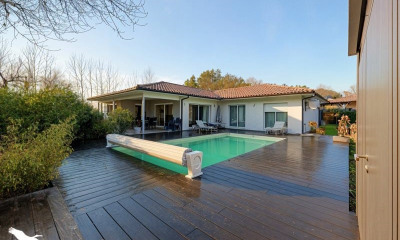 Située dans la charmante ville de BIGANOS (33380), cette propriété lovée dans un environnement rare, exceptionnel et bucolique, offre un cadre de vie paisible et verdoyant au cœur de la forêt. Ce havre de paix est situé seulement à 5 minutes en voiture de la gare, du centre-ville, d'une zone commerciale, du centre de loisirs, des écoles, (voire un abri bus scolaire à proximité), des pistes cyclables et du port atypique de BIGANOS, à environ 45 minutes de l'aéroport de MERIGNAC, 20 minutes d'ARCACHON, et 40 minutes de BORDEAUX. Cette localité dynamique et conviviale est idéale pour les familles en quête de tranquillité tout en restant connectés aux commodités essentielles. De plus BIGANOS bénéficie d'un environnement naturel remarquable, avec la proximité du BASSIN D'ARCACHON et de ses plages, offrant un cadre de vie équilibré entre nature et urbanité. Entourée d'un parc fleuri et agrémenté d'arbres d'essences diverses, la maison de plain pied d'une surface habitable de 132 m2 environ, propose un agencement fonctionnel avec une belle véranda, une cuisine équipée, une jolie pièce de vie avec une grande et belle cheminée avec insert, trois chambres dont un bureau, une salle de bains et un WC indépendant. Un garage de 30m2 attenant avec un cellier viennent compléter la maison. Le chauffage est assuré par une pompe à chaleur réversible gainable (maison + véranda) A l'extérieur, une magnifique grange de 57 m2 (construite en 2020 de manière traditionnelle), idéale pour abriter véhicules et matériels. Une cuisine extérieure avec une grande cheminée et grill est également parfaite pour préparer les grillades, conserves. Ce véritable petit coin de paradis est le lieu idéal, prêt à accueillir un ou plusieurs chevaux, qui pourront vivre en parfaite autonomie grâce à une écurie avec deux box, un plan d'eau, une prairie. Une chêneraie, un ruisseau et un étang autorisé de 2000 m2 alimentés par des sources ajoutent au charme de cette propriété de 31900 m2. Vous aurez la possibilité de construire une piscine et de bénéficier d'une extension d'environ 40 m2. Cette propriété allie confort et potentiel d'aménagement au cœur d'un environnement naturel préservé. Les informations sur les risques auxquels ce bien est exposé sont disponibles sur le site Géorisques : Prix de vente : 850 000 euros Honoraires charge vendeur Contactez votre conseiller SAFTI : Isabelle GUILLOT - EI - Agent commercial immatriculé au RSAC de BORDEAUX sous le numéro 827 640 293