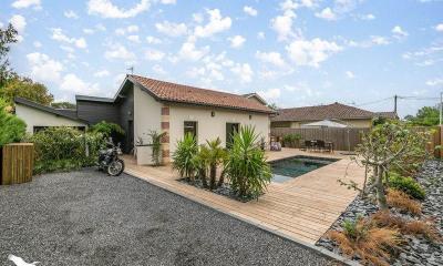 La hume, dans rue recherchée, maison de plain pied lumineuse composée d'une entrée, une belle pièce de vie de 40 m², cuisine et côté nuit 3 chambres. A l'extérieur, un beau jardin donnant sur le Parc de la Cheneraie. Pour votre confort une piscine.