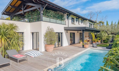 Située dans le quartier prisé de La Hume à Gujan-Mestras, cette villa contemporaine de 2019 offre un cadre de vie rare à deux pas du bassin. Sur un terrain de 710 m² exposé plein sud, elle propose une piscine, une terrasse couverte, un abri de jardin et 4 places de stationnement. À l'intérieur, 151 m² habitables comprenant une belle pièce de vie lumineuse avec cuisine ouverte, 4 chambres dont 2 en rez-de-chaussée, 2 salles d'eau, 3 WC, un cellier, un interphone, chauffage au sol et accès PMR. Garantie décennale et dommage ouvrage jusqu'en 2028. Environnement calme, proche des écoles, du lycée, des commerces, du bus et de la gare de La Hume. Idéale pour une famille locale ou en résidence secondaire. Un bien clé en main à découvrir sans tarder. Contactez-moi pour une visite. Les informations sur les risques auxquels ce bien est exposé sont disponibles sur le site Géorisques : Prix de vente : 599 000 euros Honoraires charge vendeur Contactez votre conseiller SAFTI : Mohamed HALLALI - EI - Agent commercial immatriculé au RSAC de BORDEAUX sous le numéro 799264478