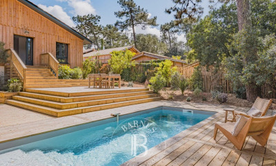 Entourée de pins cette superbe villa en bois allie charme, authenticité et modernité. Elle dispose de quatre belles chambres, offrant de multiples possibilités d'aménagement , une charmante salle de bain et une salle d'eau conçues avec des materiaux haut de gamme. La cuisine ouverte et équipée ouvre sur un salon spacieux et lumineux; de grandes ouvertures permettent de profiter de la vue sur la nature et d'accéder directement à la grande terrasse en bois, idéale pour profiter du jardin planté de pins et d'arbousiers. Enfin, cette maison bénéficie d'une construction de qualité et durable ce qui permet une parfaite isolation été comme hiver.