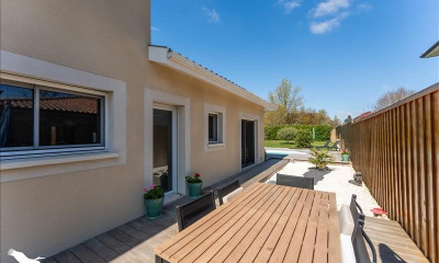 NOUVEAU PRIX Nichée dans un secteur résidentiel recherché, à proximité des écoles, des transports et des commerces, cette belle maison familiale en excellent état vous offre un cadre de vie confortable et convivial. Dès l'entrée, vous découvrirez un bel espace de vie composé d'un salon et d'une salle à manger chaleureux, prolongée par une cuisine équipée et aménagée ouvrant sur une agréable véranda faisant office de jardin d'hiver. Le rez-de-chaussée accueille également trois chambres confortables, une salle d'eau , ainsi qu'une buanderie fonctionnelle. A l'étage, une spacieuse suite parentale avec salle de bain offrant un véritable cocon d'intimité. A l'extérieur, vous profiterez d'un jardin paysager avec une très belle piscine, d'une dépendance et d'un espace terrasse indépendante avec un barbecue , parfait pour vos repas d'été et moments entre amis. Une maison clés en main, lumineuse et parfaitement entretenue dans un quartier familial calme et verdoyant. A noter: bien que proche de l'aéroport, la maison n'est pas située sur le couloir aérien et bénéficie d'un environnement paisible. les nuisances sonores sont minimes. Contacter Patricia Bourdenx pour visiter et vous accompagner dans votre projet, ou par courriel à Cette présente annonce a été rédigée sous la responsabilité éditoriale de PATRICIA BOURDENX agissant sous le statut d'agent commercial RSAC 832896658 auprès de la SAS PROPRIETES PRIVEES, Réseau national immobilier, au capital de 40000 euros, 44 ALLÉE DES CINQ CONTINENTS - ZAC LE CHÊNE FERRÉ, 44120 VERTOU, RCS Nantes n° 487 624 777 00040, Carte professionnelle T et G n° CPI 4401 2016 000 010 388 CCI Nantes-Saint Nazaire. Garantie GALIAN - 89 rue de la Boétie, 75008 Paris. Mandat réf 413663Le professionnel garantit et sécurise votre projet immobilier. dont 4% honoraires TTC à la charge de l'acquéreur. Les informations sur les risques auxquels ce bien est exposé sont disponibles sur le site Géorisques : georisques.gouv (4.00 % honoraires TTC à la charge de l'acquéreur.) Patricia BOURDENX (EI) Agent Commercial - Numéro RSAC : BORDEAUX 832896658 - . Les informations sur les risques auxquels ce bien est exposé sont disponibles sur le site Géorisques : georisques. gouv. fr