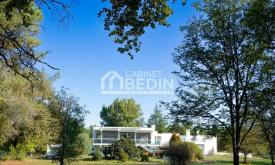 Un air de Californie flotte sur cette somptueuse maison d'architecte conçue pour une vie de famille. A l'abri des regards, à 10mn du golf de Pessac, à 15mn du centre ville de Pessac, proche de la gare, des commerces et transports, cette grande maison lumineuse d'environ 330 m² dans son écrin de verdure n'attend que vous. Ce bien s'articule autour d'une large terrasse, face au parc et à l'espace piscine. Une entrée amène d'un côté à une grande pièce de vie, cuisine ouverte, salle à manger tout en transparence pour profiter du parc paysagé. De l'autre côté, un espace nuit avec 2 chambres donnant sur la piscine et une salle de bain commune. A l'étage, une immense suite parentale surplombant le jardin et la fôrêt, 2 autres chambres avec salle de bain offrent beaucoup d'espace et de confort. Le parc paysagé propose un boulodrome, un terrain de beach volley, plusieurs espaces pour se relaxer,une piscine à débordement très relaxante et une immense terrasse. Un cellier, une élégante cave enterrée, un large parking, un carport 4 véhicules et 2 grands garages complètent ce bien d'exception. Contactez-moi pour découvrir ce bijou. DPE C (81) et GES C (13) Montant estimé des dépenses annuelles d'énergie : entre 1780 et 2500 euros par an. Les informations sur les risques auxquels ce bien est exposé sont disponibles sur le site Géorisques Prix HAI: 2 150 000€ Honoraires à la charge de l'acquéreur 100 000 € soit 4.65% Prix hors honoraires : 2 050 000€. Contactez Corinne Prémont. Agent Commercial Indépendant. RSAC : 384152203 / RCP : 127 100 479 Découvrez tous nos biens sur IMMOBA.