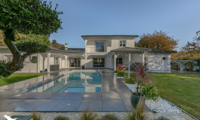 Au calme d'une impasse et au centre de la commune,cette magnifique maison d'architecte aux prestations de qualité,vous offrira une belle pièce de vie lumineuse de plus de 90 m² avec sa cuisine entièrement équipée ,4 chambres dont deux suites parentales. Coté détente, une piscine interieure avec SPA donnant sur un jardin paysager!