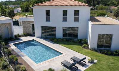 Venez découvrir cette sublime villa neuve 5 chambres avec garage - local technique et piscine - frais de notaire réduits. La maison de 168 m², comprend également un spacieux garage attenant de 31 m², un local technique de 13 m², ainsi qu'une piscine. Dès l'entrée, vous serez émerveillés par la grande pièce de vie baignée de lumière de plus de 60 m² avec cuisine ouverte. Côté praticité, retrouvez également un grand cellier/buanderie attenant à la cuisine. Toujours en rez-de-chaussée, une aile parentale de 32 m² comprenant un dressing et salle d'eau avec wc, donnant accès direct sur le jardin. A l'étage, un dégagement dessert 4 chambres supplémentaires, ainsi une salle de bains avec douche et baignoire, et une seconde salle d'eau. Chaque niveau comporte un wc indépendant. Pour plus de confort, la maison est équipée d'un gainable réversible en chauffage et climatisation. Située dans un environnement privilégié, la villa est à moins de 10 minutes à pieds des commerces et commodités (écoles, commerces, ligne G ..) Plusieurs projets 3D d'aménagement non-contractuel. Programmer dès maintenant votre visite. Référence agence : 419