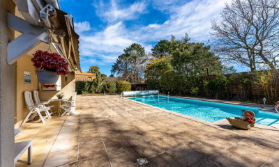À 5 minutes de la Dune du Pyla, découvrez cette maison d'environ 180 m², en lisière de forêt. Cette propriété préserve toute son intimité grâce à l'absence totale de vis-à-vis. La maison se compose d'une entrée desservant un spacieux salon, une salle à manger et une cuisine ouverte avec son îlot central. A cela s'ajoute un coin bureau ainsi qu'une buanderie. Au rez-de-chaussée, la partie nuit comprend une suite parentale avec salle d'eau ainsi que trois autres chambres dont une avec sa salle d'eau privative et des WC invités. À l'étage, retrouvez une seconde suite parentale avec salle de bain, une mezzanine pouvant accueillir un bureau ou un espace de détente supplémentaire. Sur une parcelle de plus de 1000 m², l'extérieur offre une cuisine d'été et une terrasse donnant sur une magnifique piscine. Un cabanon permet d'aménager des espaces de rangement supplémentaires. CLASSE ÉNERGIE : D (212) / CLASSE CLIMAT : B (7) Montant moyen estimé des dépenses annuelles d'énergie pour un usage standard, établi à partir des prix de l'énergie des années 2021, 2022 et 2023 : 2 720 € - 3 740 € Prix de vente : 1 090 000€ frais d'agence inclus. Honoraires à la charge de l'acquereur de 4,8% soit 50 000€ inclus tel que définis dans le mandat. Les informations sur les risques auxquels ce bien est exposé sont disponibles sur demande ou sur le site Géorisques Pour plus d'informations, contactez Arnaud Fourton Agent Commercial Indépendant RSAC : 833157878 / RCP : AACI/8431/13054 Tous nos biens sur IMMOBA