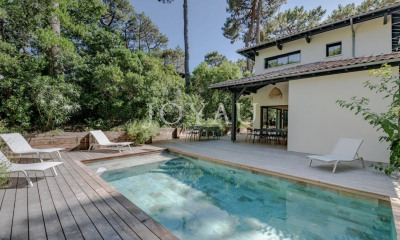 Sublime villa contemporaine, entièrement rénovée, d'une surface de 165 m² sur 945 m² de parcelle : Vous disposerez d'un vaste salon avec cheminée et d'une très belle cuisine ouverte entièrement équipée "design", cellier /buanderie et garage attenant. Lespace nuit est composé de deux grandes suites ainsi que deux belles chambres supplémentaires avec salle d'eau. Grâce à une large baie vitrée à galandage, l'espace vie donne sur la piscine et terrasse avec en toile de fond un panorama spectaculaire sur la forêt domaniale. Les atouts majeurs de cette villa sont : ELEGANCE, EMPLACEMENT EXCEPTIONNEL, PRESTATIONS HAUT DE GAMME, QUIETUDE !! Les informations sur les risques auxquels ce bien est exposé sont disponibles sur le site Géorisques :