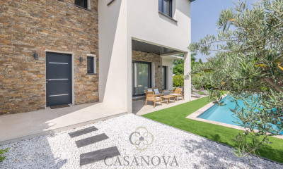 Au centre de cette commune très recherchée à proximité immédiate de Montpellier et de toutes les commodités (commerces, tramway, écoles), cette superbe villa contemporaine d'environ 215 m² habitables réalisée en 2014 avec des prestations haut de gamme profite d'un environnement résidentiel exclusif, dans un écrin de verdure à l'écart de l'agitation de la ville. L'espace de vie d'environ 66 m² profite des terrasses plein sud, face à la piscine et au jardin. La partie nuit propose 4 belles chambres avec chacune sa salle d'eau ou sa salle de bain. De beaux volumes, un bel espace et un agencement qui permet d'avoir une réelle intimité à chaque endroit de la maison. En annexe, une grande buanderie, un garage de 35 m² et un vaste sous-sol aménagé pour le stockage. Les extérieurs sont parfaitement aménagés sur un site naturellement boisé avec un joli jardin Méditerranéen autour d'une belle piscine d'environ 45 m². Un superbe cadre de vie à découvrir sans délais !