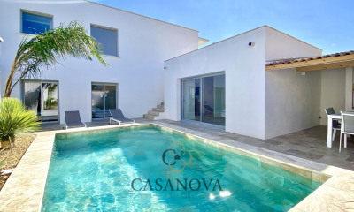 Côté Frontignan Plage, Maison atypique par son emplacement (3 e ligne mer, avec son accès direct à la plage par un chemin privatif.) et par sa conception en ossature bois, un avantage acoustique, écologique et énergétique La maison fait de suite pensée à l'esprit créole, Louisianne, une fois la porte ouverte, nous sommes choqués par la lumière de cette pièce de vie de plus de 62 m2, la cuisine ouverte très bien équipée est parfaitement intégrée, buanderie le poêle à granule donne une atmosphère chaleureuse, les trois grandes baies ouvrent sur une terrasse plein sud À l'étage, une suite parentale 18 m2 avec dressing et salle de bain, ainsi que deux grandes chambres 13 et 15 m2 et une seconde salle de bain avec baignoire. Toutes les chambres donnent sur une terrasse plein sud avec une vue dégagée. Le terrain de plus de 1 000 m2 plat et clôturé avec une piscine de 3X6 m, pool house avec cuisine d'été, coin potager et jardin paysage. Un cabanon de 10 m² pour vélos ou planche à voile Une qualité de vie à l'année, on vit en vacances 12 mois sur 12 Proche du cœur de Frontignan et ses commerces environ 3 kilomètres et 5 kilomètres du péage A9 Possibilité de rentrer 5 voitures dans la propriété, bien rare