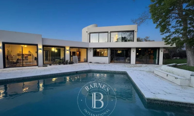 MONTPELLIER NORD - EXCLUSIVITE Découvrez une perle rare : une villa d'architecte emblématique des années 1960, nichée au cœur d'un parc arboré de plus de 5 500 m². À seulement quelques pas de l'effervescence urbaine, du tramway et des grands axes, cette propriété vous offre un véritable havre de paix, en parfaite harmonie avec la nature. La maison principale, à toit plat, incarne l'esprit architectural des sixties et se compose de 5 chambres. Vous serez séduit par son style affirmé, sa belle hauteur sous plafond, ses volumes généreux, sa luminosité omniprésente et ses larges surfaces vitrées qui invitent à la convivialité et au bien-être. L'inspiration 'Le Corbusier' y est palpable, tant dans les lignes que dans l'agencement. Un appartement indépendant de type 3 pièces complète ce bien d'exception. Il offre de nombreuses possibilités : hébergement pour famille ou amis, espace pour une profession libérale ou encore logement pour une aide à domicile. Cette propriété unique, alliant caractère, fonctionnalité et sérénité, représente une opportunité rare d'acquérir une villa d'exception dans un cadre naturel privilégié. Contacter IMMOBIS Prestige ou Prix TTC et Honoraires à charge vendeur TTC