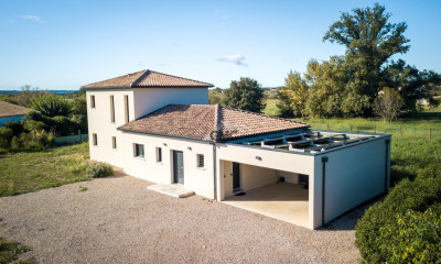 PIERRES-BLANCHES IMMOBILIER Pézenas - PBI Crush C'est à Pézenas, cité illustre où Molière trouva jadis l'inspiration et la verve de ses premiers triomphes, que s'élève cette villa contemporaine à l'architecture sculpturale et au caractère affirmé. Telle un trait de fusain sur un fond d'émeraude, elle se déploie avec grâce au cœur d'un jardin de 1 100 m² où s'épanouissent palmiers et essences exotiques, célébrant l'âme du Sud et la douceur de vivre méditerranéenne. Dès les premières marches, le décor se dévoile : un espace de vie aérien et lumineux, baigné de soleil grâce à de larges baies vitrées toute hauteur qui invitent la nature à entrer dans la maison. Les 90 m² du niveau principal s'articulent en une pièce de réception majestueuse, rassemblant séjour, salle à manger et cuisine ouverte dans un même souffle contemporain. Les volumes, les perspectives et la lumière s'y unissent dans une composition d'une fluidité remarquable. Au rez-de-jardin, deux master suites d'agréables dimensions offrent chacune leur salle d'eau privative, pensées dans un esprit de confort et de raffinement. À l'étage, la mezzanine surplombe la pièce de vie, accentuant la sensation d'espace et de légèreté. Trois chambres, toutes pourvues de leur salle d'eau, composent la sphère intime et préservent l'harmonie d'un quotidien serein. À l'extérieur, la piscine de 7 mètres, bordée de sa plage en teintes minérales, s'impose comme la vedette de l'été. Les nuances de gris et de vert, la texture des matériaux et la précision des détails signent une composition esthétique d'une élégance rare, à la fois sobre et sophistiquée. Tout ici célèbre la lumière, l'espace et l'équilibre parfait entre architecture et nature. Le Plus : Menuiseries aluminium – Climatisation réversible, Pompe à chaleur – Fibre optique – Portail automatique, Piscine à gestion domotisée – Garage – Deux stationnements extérieurs Notre Avis : D'Art et d'Histoire ® Sous le soleil de Pézenas, cette villa dessine un dialogue harmonieux entre modernité et héritage. Une demeure d'émotion et de lumière, où chaque perspective évoque la poésie d'un Sud éternel. 'Une Vision Authentique et Contemporaine de l'Immobilier de Luxe.' Franck Ballester ® TOUTE INSPIRATION, MODIFICATION, REPRODUCTION EST INTERDIT - REGISTERED TRADEMARK Dossier sur références Contact +33 (0)4 67 70 07 87