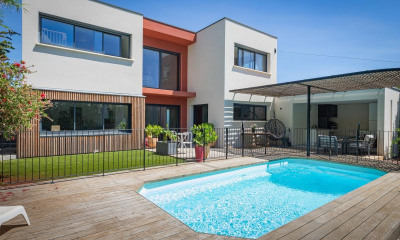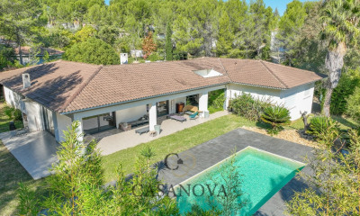Le Cabinet ARGENCE & ARGENCE Immobilier vous présente cette fabuleuse villa d'architecte nichée au cœur d'un environnement boisé sur la prestigieuse commune de Saint Gély Du Fesc. Pour le plus grand confort de ses futurs habitants, l'architecte a dessiné cette villa d'un seul trait pour vous offrir un plain-pied total sur 220 m² habitables auxquels viendront s'ajouter 170 m² de terrasse en bois Garapa et un pool house de plus de 20m². La pièce de vie de 90 m² est orienté sud, elle bénéficie d'une hauteur sous plafond de 3 mètres de haut et s'ouvre sur la terrasse par de larges baies à galandage. Le concept du IN & OUT prend ici tout son sens. Un bureau complète l'espace. Coté nuit, la villa vous propose 4 belles chambres, dont une Junior Suite et une Master Bedroom de 32 m² avec accès direct à la terrasse. Côté jardin, la maison repose sur un terrain dominant de 2 000 m² situé à l'abri des regards et des nuisance. Le terrain est peuplé de chênes et se situe en bordure d'une zone verte préservée. Au bout de la terrasse, se trouve une fabuleuse piscine de 11 mètres de long, nichée au cœur d'un environnement verdoyant. Un pool house de 20 m² complète cet espace. Les prestations contemporaines , haut de gamme, ont été soigneusement sélectionnées par l'architecte et sont définitivement à la hauteur de la promesse faite pour un bien d'une telle qualité. Garage double, panneau photovoltaïque, climatisation réversible gainable, arrosage automatique, normes TR2020 et bien d'autres surprises encore. Un bien de grand standing qui vous permettra de bénéficier de frais de notaire réduit. Dossier complet sur demande.