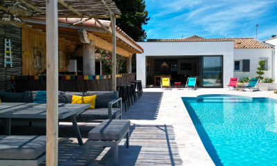 Sète. Emplacement exceptionnel dans un quartier prisé et en première ligne sur la plage peu fréquentée. Prestigieuse villa d'architecte de 191 m2 sur un terrain de 800 m2. Vaste terrasse avec piscine chauffée bordée par un jardin arboré. Calme absolu. Prestations haut de gamme ; Garage de 53 m2, ascenseur, climatisation réversible, aspiration centralisée, vue panoramique sur la mer.. Vaste séjour de 81 m2 ouvert sur une terrasse panoramique avec cuisine américaine équipée, salle à manger et arrière cuisine. Le rez-de-chaussée propose trois belles chambres, une salle d'eau, ainsi qu'une superbe suite parentale avec salle d'eau et dressing privés. Le niveau de qualité de la villa est irréprochable. À proximité immédiate de la plage et des commodités.