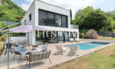 Aux portes de Grenoble , sur les hauteurs de La Tronche, dans un havre de paix, sur un secteur résidentiel, maison d'architecte haut de gamme édifiée en 2016, baignée de lumière, sur deux niveaux, aux vues imprenables . Elle se compose d'une entrée avec placard, l'espace nuit comprenant 3 chambres, une buanderie, une salle de bain avec baignoire et douche. Un escalier dessert l'étage inférieur, ou l'on retrouve une magnifique pièce à vivre avec cuisine entièrement équipée de 60m2, ouvrant sur une terrasse et donnant sur un accès direct au jardin paysagé agrémenté d'une piscine. Au même niveau, une suite parentale avec dressing et salle de bain de 30m2, viennent compléter ce niveau. La propriété dispose également d’un garage, de deux places de stationnement extérieures ainsi que d’un local technique. Chauffage au sol avec pompe à chaleur Eau/Air, climatisation. Diagnostic de performance énergétique A. Indice d'émission de gaz à effet de serre A. Montant, minimum, estimé des dépenses annuelles d’énergie pour un usage standard : 460 €/an (année de référence 2021) Montant, maximum, estimé des dépenses annuelles d’énergie pour un usage standard : 680 €/an (année de référence 2021) Les informations sur les risques auxquels ce bien est exposé sont disponibles sur le site Géorisques : georisques.gouv.fr.
