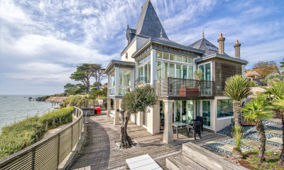 Exclusivité Agence du Vieux Port Pornic. Dans le secteur prisé des "Mousseaux", maison environ 157 m2 habitables offrant de plain pied : entrée, salon-séjour lumineux équipé d'une belle cheminée, une cuisine aménagée, toilettes, salle de bains, chambre et dressing. Une buanderie et un grand bureau complètent ce niveau. A l'étage, mezzanine, deux chambres, une salle d'eau avec wc. A l'extérieur : un garage indépendant, un studio, une dépendance en pierre et un abri. Terrain clos et arboré de plus de 1000 m2. Prix FAI : 931 500 € dont 3,5% TTC d'honoraires charge Acquéreur. Les informations sur les risques auxquels ce bien est exposé sont disponibles sur le site Géorisques. https://www.géorisques.gouv.fr