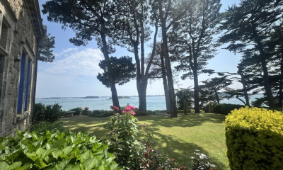 Rare à la vente, propriété d'exception offrant un panorama unique face aux Iles du Golfe du Morbihan. Edifiée sur un parc paysager de près de 6000m2 et entièrement clos de mur, cette demeure de 1911 fut entièrement réhabilitée en 1998. Au rez de chaussée de plain pied terrasse, entrée sur un sol unique en pierre de bourgogne, séjour et salon avec cheminée en pierre de taille et poutres apparentes sous une hauteur de 3m. Au premier et deuxième étage, 4 chambres dont une master et un dortoir, et 2 salles d'eau. Chauffage au sol. Parking pour 2 voitures. Un bien unique au sein d'un environnement époustouflant.