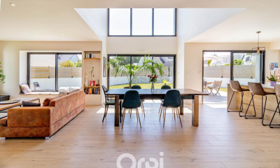L'agence ORPI AFM IMMOBILIER vous présente cette maison contemporaine de 2011, d'environ 110 m² habitables, exposée plein sud, idéalement située entre le bourg et la plage, sur un terrain clos et parfaitement entretenu d'environ 300 m². Vous serez séduits par son agencement optimisé, sa luminosité et son excellent état général. Au rez-de-chaussée, vous découvrirez : un vaste séjour lumineux ouvert sur deux terrasses (Sud et Ouest), une cuisine aménagée et équipée au goût du jour, un WC séparé, une suite parentale avec grande chambre, dressing et salle d'eau privative. Au 1er étage, le palier dessert : trois belles chambres, dont une avec placard intégré, une salle d'eau, un WC séparé. À l'extérieur, vous profiterez également d'un box de stockage, d'un carport pour deux véhicules et d'un jardin clos de haies, parfaitement entretenu. À visiter sans attendre ! Contactez dès aujourd'hui votre agence ORPI. Référence agence : 4509