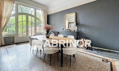 Belle demeure d'architecte des années 60, à proximité immédiate du parc Barbieux, des écoles et du Tramway. Dans un écrin de verdure, sur près de 1000m2, cette maison familiale offre plus de 200 m2 utiles (172 m2 habitables) sur deux niveaux, un sous-sol complet et des combles aménageables. Le rez-de-chaussée offre une entrée de caractère avec un bel escalier, un salon-salle à manger traversant de 45 m² avec cheminée feu de bois, une salle à manger, une cuisine équipée, un bureau, un vestiaire et WC. Le premier étage dessert une chambre parentale avec salle de douche attenante, quatre chambres avec des rangements, une salle de bain, une salle de douche, un dressing et un WC. Le grenier peut être aménagé, le sous-sol comprend un accès jardin, un garage double, une buanderie, une chaufferie, un atelier et une cave à vin. La grande terrasse s'ouvre sur un magnifique jardin arboré.
