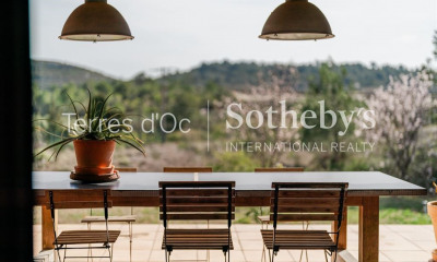 Résidence secondaire de standing” Retraite élégante entre mer et montagne – 180 m² – Terrain paysager de 1,3 hectare Cette propriété située dans un secteur recherché, à seulement 30 minutes de la Méditerranée et aux portes des Corbières, est idéale comme résidence secondaire haut de gamme. Elle offre 180 m² habitables répartis autour d'un vaste séjour cathédrale avec cheminée et cuisine Gaggenau ouverte. L'atmosphère y est chaleureuse, élégante, et baignée de lumière tout au long de la journée. La maison dispose de trois chambres, dont une suite majestueuse installée dans une tour en pierre avec vues dégagées sur la campagne. Une quatrième chambre ou espace de télétravail peut être facilement aménagé. L'ensemble repose sur une conception éco-responsable parfaitement maîtrisée : menuiseries à haute performance thermique, température intérieure régulée naturellement, collecte des eaux pluviales, assainissement par micro-station autonome. Le parc, piscinable et partiellement constructible, accueille une cuisine d'été traditionnelle avec cheminée, une terrasse propice aux longues soirées d'été et un garage indépendant à fort potentiel d'aménagement. Une maison de charme et de caractère, sans travaux, à vivre au fil des saisons ou à savourer comme maison de vacances élégante et durable.
