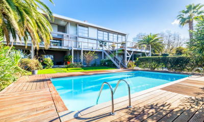 À quelques minutes à pied de la plage de la Milady et du golf d'Ilbaritz, magnifique villa californienne de 200 m² en position dominante offrant une vue mer exceptionnelle depuis chaque pièce. Édifiée sur trois niveaux, le rez-de-chaussée dispose d'un salon/séjour avec une grande cheminée, d'une cuisine aménagée, équipée et semi-ouverte, et d'une chambre avec salle d'eau. À l'étage, une suite parentale très lumineuse avec vue sur l'océan. Le niveau inférieur propose deux chambres avec accès à la terrasse et entrée indépendante, une salle d'eau et un bureau. En extérieur, une piscine chauffée avec nage à contre-courant, une terrasse de 100 m², un double garage, un jardin arboré et un boulodrome. Parking extérieur pour 4 véhicules.