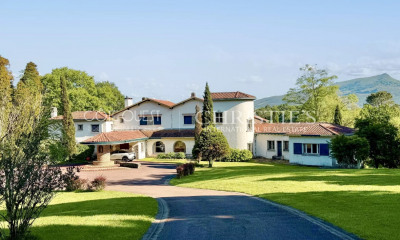 Cette propriété d'exception se situe sur un terrain de 5,4 hectares dominant le Golf de Chantaco. La maison de maître d'environ 1000 m² conçue sur 3 niveaux par l'architecte Pavlovsky, comprend de très beaux espaces de réception, 2 cuisines, 2 salles à manger et 14 chambres avec chacune une salle de bains, une salle d'eau ou un cabinet de toilette. Une belle allée menant à la maison dessert le logement de gardien, pour arriver à l’arrière de la maison où se trouve également un garage et un logement de service. Cette maison exposée sud, offre une très belle vue sur la Rhune et les montagnes basques et dispose d’un magnifique parc arboré agrémenté d’un tennis et d’une piscine.