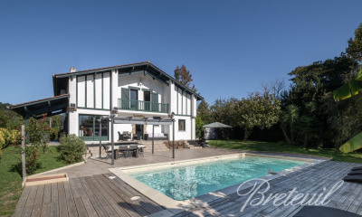 Entre océan et montagnes, au cœur de la Côte Basque, à 10 minutes de Saint-Jean-de-Luz, cette propriété d’exception s’étend sur plus de 13 hectares de nature préservée. Une demeure principale d’environ 800 m², alliance d’histoire et de confort contemporain. Édifiée sur trois niveaux, la villa principale séduit par ses volumes généreux et la lumière qui s’y invite à chaque instant. Dès l’entrée, une cheminée monumentale, un salon de réception élégant et une bibliothèque aux boiseries chaleureuses annoncent le ton : celui d’une demeure habitée par l’authenticité. Les espaces de vie s’ouvrent sur une vaste terrasse plein sud, offrant une vue panoramique saisissante sur la Rhune. Matériaux nobles, finitions raffinées et atmosphère feutrée participent à l’identité unique du lieu. L’espace nuit comprend dix chambres et sept salles d’eau ou de bains, garantissant à chacun confort et indépendance. Une maison de gardien indépendante complète l’ensemble. Les extérieurs invitent à une vie tournée vers la nature et le plein air. Piscine chauffée de 9x18 m avec pool house entièrement équipé (cuisine, salle d’eau, WC), maison de gardien, terrasse couverte, roseraie et allées bordées d’arbres centenaires, composent un cadre rare. Mais ce domaine se distingue surtout par ses installations sportives d’exception : un court de tennis et un practice de golf privé, véritables atouts pour les amateurs de sport.