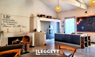 Située dans l'hyper centre et donc à deux minutes à pied de toutes les commodités, flanquée d'un garage de 51 m², cette maison de village a fait l'objet d'une réhabilitation totale et si le challenge était de taille le résultat est superbe. Alternant le béton ciré, les grands carreaux et le plancher, les propriétaires ont su mettre en valeur la charpente d'origine tandis que la hauteur sous plafond de la pièce de vie, qui totalise 70 m², ne manque pas d'interpeller le visiteur séduit tant par les volumes que par leurs aménagements. Pourvue d'une terrasse de 25 m², équipée de trois chambres et sous toiture d'une confortable bibliothèque, la maison offre encore en rez de chaussée un espace très joliment aménagé de 60 m² avec salle d'eau et WC, totalement indépendant et idéal pour qui souhaiterait exercer une activité libérale dans un cabinet ou un bureau attenant à son domicile. Menuiseries alu, ouvertures à galandage, poële à bois, climatisation, volets roulants élec.centralisés, domotique, etc.