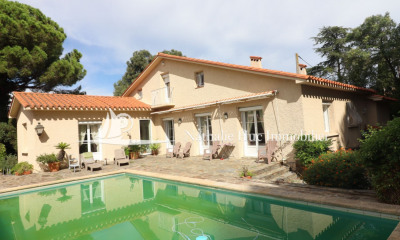 Remarquable mas en cœur de village, offrant 268m² habitables sur une parcelle de 840m² dénué de vis-à-vis. Dès l'entrée, l'élégance des matériaux, la générosité des volumes et la luminosité insufflent à cette maison une atmosphère à la fois raffinée et accueillante. Le rez-de-chaussée s'organise autour d'un bel espace de vie traversant, prolongé par une cuisine équipée, ainsi que d'une confortable suite parentale avec dressing et salle d'eau, offrant un confort de plain-pied idéal. À l'étage, 4 chambres dont 1 en suite avec salle d'eau et dressing, ainsi que 2 salles d'eau, permettent d'accueillir famille et amis en toute sérénité. Le jardin, véritable oasis de verdure avec piscine et cuisine d'été, est un lieu où prospèrent détente et convivialité. Un garage de 21m² complète l'ensemble. Alliant le cachet de l'ancien au confort moderne, ce mas est un véritable havre de paix, qui séduira les amoureux de caractère et d'authenticité, amateurs d'un cadre de vie des plus confortables. Une opportunité aussi rare que précieuse dans un secteur recherché