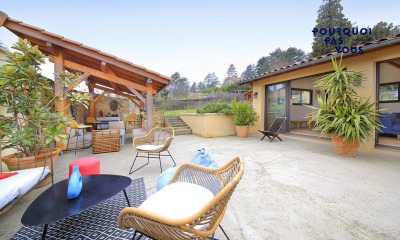 Située sur la commune de Saint-Cyr, dans une zone naturelle protégée, cette maison de caractère de 265 m² vous offre un cadre de vie d'exception, alliant calme absolu et proximité des commodités. L'environnement préservé garantit une tranquillité totale, loin des nuisances urbaines, tout en étant à quelques minutes seulement de Lyon. La propriété, à quelques pas du club de tennis, bénéficie d'un accès direct aux sentiers de randonnée et de VTT, idéals pour découvrir les Monts d'Or et ses cabornes. La maison, se distingue par une pièce de vie aux volumes généreux, baignée de lumière naturelle. La cuisine ouverte, parfaitement équipée, se prolonge sur un salon chaleureux avec une cheminée Focus, créant un espace convivial et cosy. De là, vous accédez directement à une terrasse plein sud, sans vis-à-vis et au calme, offrant une vue dégagée sur le jardin et la nature environnante. L'espace nuit, quant à lui, se compose de cinq chambres réparties sur plusieurs niveaux. La suite parentale, dispose d'une salle de bain privative, tandis qu'une autre chambre bénéficie d'une salle de douche. Les trois autres chambres se partagent une salle de bain commune. La maison est équipée d'un chauffage au sol dans toute les pieces, assurant un confort thermique optimal en toutes saisons, ainsi que de nombreux autres équipements comme une buanderie, une cave et un sauna. À l'extérieur, cette propriété offre un jardin paysagé exceptionnel de 4351 m2 avec une grande piscine, un pool house équipé d'une cuisine extérieure, et un terrain de pétanque pour vos moments de détente en famille ou entre amis. L'environnement naturel, calme et préservé, ainsi que la grande piscine et ses équipements extérieurs, en font un lieu idéal pour profiter des journées ensoleillées. L'annexe de 124 m², construite en 2012 sur deux niveaux, peut être utilisée selon vos besoins : garage, atelier ou maison d'invités. Un box à chevaux complète l'ensemble, offrant ainsi la possibilité d'accueillir des animaux tout en profitant pleinement de l'espace. Cette maison de caractère, nichée dans un écrin de nature, représente un bien rare sur les Monts d'Or, où la qualité de construction, la tranquillité, et l'accès facile à des loisirs de plein air (tennis, randonnée) font de cet endroit un lieu unique pour s'établir et savourer la douceur de vivre. CLASSE ENERGIE : C / CLASSE CLIMAT : C Montant moyen estimé des dépenses annuelles d'énergie pour un usage standard, établi à partir des prix de l'énergie de l'année 2021 : entre 3050 et 4200 € Guillaume Brun (EI) Agent Commercial - Numéro RSAC : 797 600 988 - Lyon.