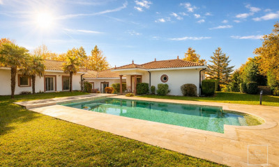 A Saint-Cyr-au-Mont-d'Or à 15 minutes de Lyon, en co-exclusivité avec l'agence Primmo, venez découvrir cette propriété nichée dans un magnifique écrin de verdure. Une maison d'architecte singulière de 1991 avec 222m2 habitable (surface utile totale 330m2) et des espaces résolument tournés vers l'extérieur : un jardin luxuriant de 3425m2 avec une vue dominante et sans aucun vis-à-vis : piscine sécurisée bordée d'arbres, cèdres majestueux, terrasses discrètes, des coins d'ombre et de lumière. A l'intérieur, beaucoup de charme et des aménagements bien pensés : une pièce de vie avec cheminée et plafond cathédrale bénéficiant d'une triple exposition Est-Sud-Ouest, cinq chambres dont deux suites parentales, un bureau, un grand dortoir/salle de jeux. Cette maison dispose d'un sous-sol complet d'environ 100m2 avec garage, buanderie et cave. Un carport est également présent et il y a de nombreuses possibilités de stationnement. Un cadre de vie unique à l'abri des regards et à proximité immédiate de Lyon, des écoles et des transports. Une vidéo drone de présentation est disponible sur demande Les informations sur les risques auxquels ce bien est exposé sont disponibles sur le site Géorisques : Prix de vente : 1 090 000 euros Honoraires charge vendeur Contactez votre conseiller SAFTI : Guillaume VIGNON - EI - Agent commercial immatriculé au RSAC de Lyon sous le numéro 908 004 815
