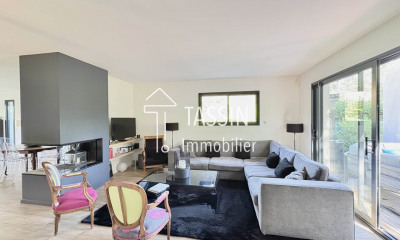 Exclusivité. Au coeur de Tassin Bourg, nichée dans un écrin de verdure, cette propriété historique de 1904 s'étend sur un vaste terrain de 2200m² agrémenté d'une piscine. Cette demeure d'exception de 344 m², élevée sur trois niveaux, offre au rez-de-chaussée un salon avec cheminée, un bureau, une pièce de réception et une cuisine. Dans les étages, un bel escalier dessert sept chambres, deux salles de douche, une salle de bains ainsi qu'un salon, offrant des espaces de vie pleins de charme, idéaux pour accueillir une grande famille. Ce bien rare présente un potentiel remarquable pour devenir une résidence de prestige après travaux de rafraichissement. À seulement 5 minutes à pied de la gare tram-train et de l'Institution Saint-Joseph, il allie calme absolu et accessibilité. Les dépendances d'environ 150 m² comprennent un sous-sol avec cave, un atelier, deux garages et une cuisine d'été. Toiture refaite et huiseries en double vitrage. Ne tardez pas à découvrir ce joyau au cœur de Tassin Bourg ! Montant estimé des dépenses annuelles d'énergie pour un usage standard, établi à partir des prix de l'énergie de l'année 2023 : entre 9470 euros et 12890 euros / an. DPE : E / GES : E. Honoraires à charge vendeur. Les informations sur les risques auxquels ce bien est exposé sont disponibles sur le site Géorisques. Pour toute information et visite, merci de contacter Karine Ploton.