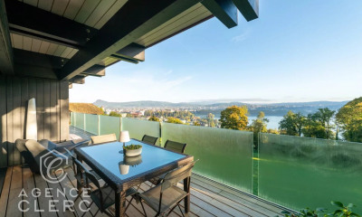 Veyrier du Lac, en position dominante lui conférant calme et totale intimité, Propriété d'exception de 490 m2 habitables 601 m2 utile bénéficiant d'une vue panoramique sur tout le lac d'Annecy et massifs à vous couper le souffle à l'atmosphère feutrée contemporaine vous invitant à la détente, 5 chambres en suite dont 1 Magnifique Master sous charpente, studio, SPA, Hammam, Sauna, Jaccuzi, atelier, piscine à débordement et grand garage finissent de compléter ce bien d'exception agrémenter des toutes dernières technologies (Domotiques, aspiration centralisée, etc..) édifié sur 4009 m2 de terrain. Plus d'informations. Yannick Bardel Chalets et Demeures - SL_1769454701