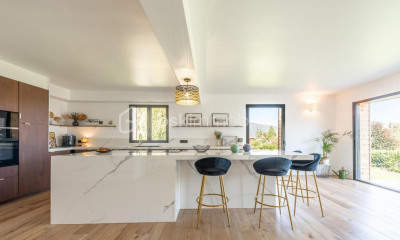 Située sur un terrain de 998 m², cette villa issue de la réhabilitation d'une ancienne grange, de 175 m² bénéficie d'un environnement rare et privilégié, entourée de verdure et offrant une vue panoramique sur le lac et les montagnes avec un ensoleillement du matin jusqu'au soir. Un véritable havre de paix, idéal pour les amoureux de la nature et de la tranquillité. Cette maison s'accompagne d'une proposition d'aménagement complet et chiffré que vous pourrez personnaliser selon vos envies. En rez de chaussée: Hall d'entrée, trois chambres de plein pied sur le jardin, une salle de bains et salle d'eau, wc indépendant et garage attenant. Etage: Vaste séjour cathédral ouverte sur une grande terrasse abritée, de plein pied, suivi du jardin, cuisine américaine, wc,. Petit plus : la possibilité d'une chambre complémentaire avec salle de bains. Mezzanine: Espace modulable, idéal pour créer une salle TV, une salle de jeux ou un bureau selon vos besoins et vos envies. Cette maison offre une belle alliance entre authenticité et modernité, dans un cadre exceptionnel. Laissez libre cours à votre imagination pour concevoir un intérieur qui vous ressemble ! EXCLUSIVITE PASCAL IMMO Contactez nous pour visiter ce petit paradis. (4.02 % d'honoraires TTC à la charge de l'acquéreur.)