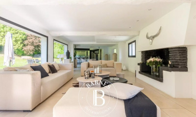 Dans le prestigieux Domaine du Chapitre, à seulement 15min du centre ville de ROUEN, au coeur d'un parc de plus d'un hectare en partie boisé, cette villa contemporaine de 467 m² baignée de lumière offre un cadre de vie privilégié. Cette maison, imaginée par ses propriétaires et dessiné par Claude JOUARDON un architecte rouennais reconnu, comprend une entrée majestueuse, une grande cuisine aménagée et équipée, une salle à manger, un salon de réception, un espace bar, une piscine intérieure avec hammam et douche, un bureau, et à l'étage, cinq chambres dont une suite parentale, deux salles de bains. Une salle de cinéma/jeux, une cave, une chaufferie et des rangements complètent ce bien au sous-sol. les 3 garages et le bar extérieur tourné vers le jardin font de ce site, un lieu unique dans un véritable havre de paix. DPE B nouvelle génération 2026. Honoraires à charge vendeur. Bien présenté par : Justine Lefebvre Agent commercial EI. Les informations sur les risques auxquels ce bien est exposeront disponible sur le site Géorisques :