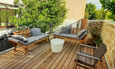 BOUGIVAL CENTRE MAISON Maison familiale nichée au coeur de Bougival. Au rez-de-chaussée : Salon salle à manger, cheminée, cuisine, WC En rez-de-jardin : Chambre et sa salle d'eau A 1er étage : Suite parentale, 3 autres chambres, bureau, salle de bains. Au sous-sol : buanderie et caves. En extérieur, terrasses et jardin devant et derrière la maison. Beaucoup de charme et de cachet, un lieu bucolique.