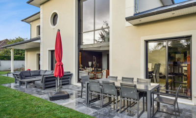Située à Croissy-sur-Seine, cette propriété prestigieuse de 425 m², comprenant 5 chambres, est un hôtel particulier élégant datant de 1870. Elle se trouve dans un cadre exceptionnel en bord de Seine, à quelques minutes du centre-ville. Établie sur un terrain de 1819 m², cette demeure offre des volumes généreux et des prestations haut de gamme. Au rez-de-chaussée, une terrasse orientée plein sud donne accès à un vaste hall d'entrée avec dressing, un double salon de 60 m² agrémenté d'une cheminée, une cuisine "family room", une arrière-cuisine, ainsi qu'un bureau avec entrée indépendante. Le premier étage, offrant une vue imprenable sur la Seine, comprend une suite pour invités avec une chambre de 24 m², sa salle de douche et son dressing, ainsi qu'un appartement parental de 90 m² composé d'un bureau, d'un salon avec cheminée, de nombreux placards équipés, une chambre de 24 m², une salle de douche avec toilettes séparées et un boudoir. Le second étage propose une chambre avec salle de douche et dressing, une chambre avec de grands placards prolongée par un balcon avec vue sur la Seine, un dégagement avec placards, une chambre avec dressing, et une salle de bains indépendante. Le sous-sol total de 125 m² comprend une salle de détente vidéo/billard, une cave à vin voûtée et aménagée, une salle de sport, une buanderie et une chaufferie. Sur la parcelle, un carport peut accueillir de 2 à 4 véhicules. Le jardin paysager, magnifiquement aménagé, borde la Seine. À 15 minutes de la gare RER A de Chatou-Croissy, avec un accès rapide aux autoroutes A14 et A86. École internationale à proximité. Pour planifier une visite, entrez rapidement en contact avec Paris Vendôme Luxury - International Realty.