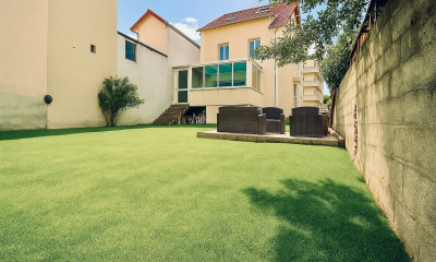 MAISONS-LAFFITTE limite LE MESNIL LE ROI - à environ 10 minutes du RER Maison familiale entièrement rénovée composée d'un double séjour donnant sur une cuisine dînatoire ouverte, 4 chambres dont suite parentale avec une salle d'eau, salle de bains, buanderie, cave et cave à vin - appartement indépendant avec pièce à vivre, coin cuisine, chambre, salle d'eau et cour privative (pouvant être loué séparément, jeune fille au pair ou profession libérale) - Terrasse - Jardin paysagé - 2 emplacements de parking dont une avec borne de recharge - Le tout édifié sur un terrain de 375 m² - AP (5.00 % d'honoraires TTC à la charge de l'acquéreur.)