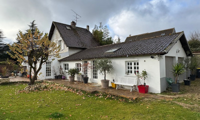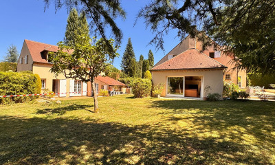 A 10 min de la gare, PROCHE DU GOLF de Saint Nom la Bretèche, au CALME sur un TERRAIN de 1520 m² environ, entièrement clos de haies et murs, belle propriété BIEN EXPOSEE composée de deux maisons récentes indépendantes pour une surface habitable de 290m²et une surface totale sous-sol compris de 524m². La première maison se compose : Au Rez de Chaussée : Une entrée avec un grand placard, un toilette d'invité avec un lave mains, un séjour avec une magnifique CHEMINEE ancienne monumentale, une cuisine aménagée et équipée ouverte sur une salle à manger, une pièce à vivre. Toutes ces pièces de réception donnent sur une TERRASSE exposée sud Ouest et sur le jardin arboré SANS VIS A VIS, toujours au rez-de-chaussée Une chambre avec sa salle de bains. Au l' étage : une suite parentale en cathédrale avec une cheminée avec une grande salle de bains et toilettes, 4 chambres dont deux sont en mezzanine, un dressing, une salle de bains. Au sous sol : Un grand garage avec un espace buanderie, une cave à vins, deux pièces de rangements, une chaudière neuve à condensation très haute performance énergétique. La deuxième maison se compose : Au Rez de chaussée, d'une entrée avec un toilette, une cuisine aménagée et équipée donnant sur une terrasse, un double emplacement pour voiture et un appentis . A l'étage : Un grand séjour avec une cheminée, une chambre une salle d'eau. Cette maison peut être entièrement réaménagée en transformant après autorisation d'urbanisme, le rez-de-chaussée en un double séjour et avec possibilité, à l'étage, de faire 3 chambres. Les deux maisons sont en BON ETAT. BEAUCOUP DE CHARME POUR CETTE PROPRIETE