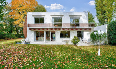 Le Vésinet – Mandat exclusif – Villa Beau-Chêne. Au cœur d'un parc paysager de plus d'un hectare, cette demeure d'exception, ancienne résidence de Joséphine Baker, allie élégance intemporelle et charme historique. Composition de la villa principale de 528 m² + 229 m² de sous-sol aménagé : • Rez-de-chaussée : entrée majestueuse, quatre salons de réception lumineux avec vue dégagée sur le jardin, cuisine dinatoire entièrement équipée, terrasse, jardin d'hiver. • Premier étage : trois chambres, espace de vie, un bureau, trois salles d'eau, WC indépendant. • Deuxième étage : sept pièces polyvalentes, deux salles de bains, WC indépendant. • Combles aménagés : pièce lumineuse avec vue dominante. Le sous-sol de 229 m² comprend cinq pièces, une cuisine indépendante, une salle d'eau avec WC, une cave à vin et un atelier, ainsi qu'un accès à la piscine et au jardin. La maison de gardien indépendante de 64 m² dispose d'un double séjour, d'une cuisine équipée, d'une salle d'eau avec WC indépendant, d'une chambre et d'une seconde salle d'eau. Les éléments historiques, tels que l'escalier en chêne massif, les moulures ornées de feuilles d'or et le parquet d'époque, ont été restaurés avec soin. En option : possibilité d'acquérir également une écurie de 176 m² avec son jardin. À proximité immédiate des écoles, des commerces et du RER A. À seulement 20 minutes de Paris.
